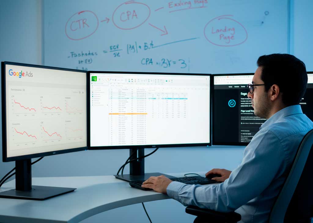 Una empresa de servicios técnicos en Lima reportaba: CPC alto, pocas conversiones, “Google Ads no funciona”. Ajustamos:
